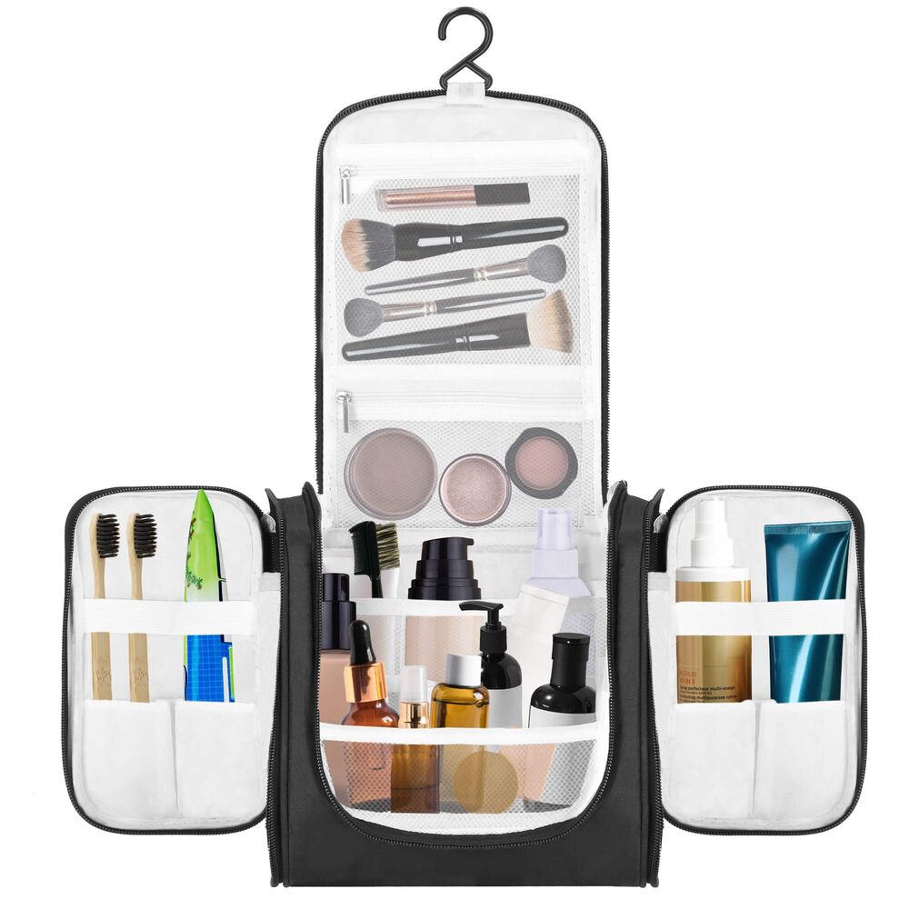 Cestovní toaletní taška je nejen funkční, ale také stylová – její elegantní černý design se hodí pro ženy i muže. Díky prostornému vnitřnímu uspořádání lze do ní přehledně zabalit potřeby i pro tříčlennou rodinu. Pohodlná rukojeť usnadňuje přenášení a kompaktní rozměry zajišťují, že se snadno vejde do kufru nebo batohu. S touto taškou máte jistotu, že vaše kosmetika i drobnosti budou vždy bezpečně uložené a přehledně uspořádané.
