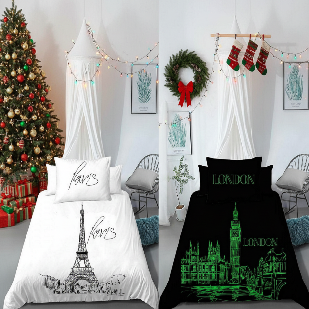 Povlečení Den v Paříži, noc v Londýně je jedinečný a vizuálně přitažlivý typ povlečení, který obsahuje fluorescenční materiály, které vytvářejí zářivý efekt, když zhasnou světla. Toto povlečení je navrženo tak, aby přineslo do ložnice nádech novosti a zábavy.