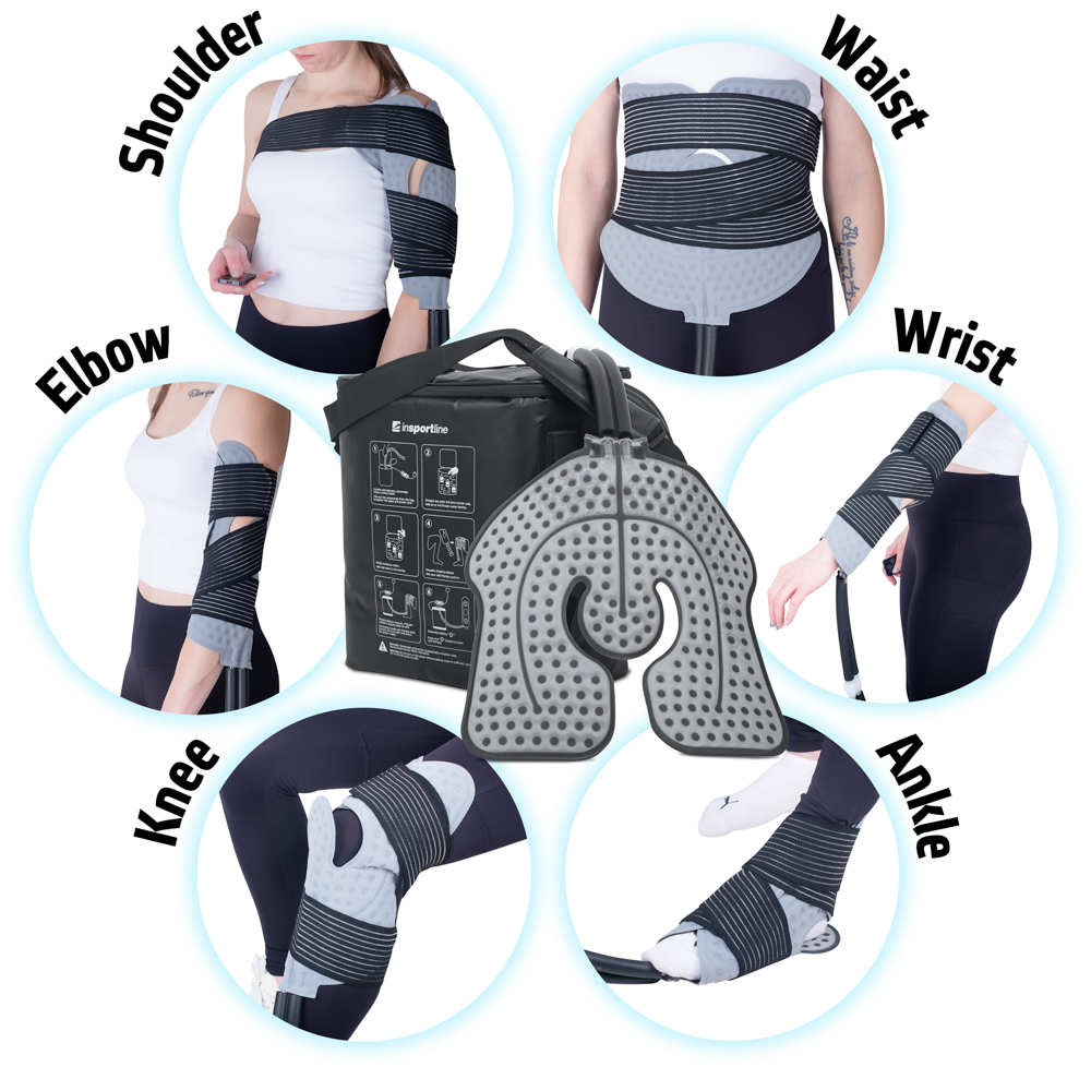 Součástí balení je prostorná chladicí podložka, kterou si můžete snadno tvarovat podle místa přiložení a tři elastické popruhy různých délek. Díky nim obklad dobře drží přesně tam, kde má - ať už chladíte koleno, rameno nebo třeba lýtko. Dlouhé hadice i napájecí kabel vám navíc dají dostatek volnosti pohybu.