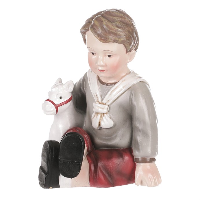 Dotaz na produktTato nádherná figurka z polyresinu zobrazuje svátečně oděného chlapce, který s láskou hýčká svou nejoblíbenější hračku v podobě bílého koníka. Představuje zde jeho nejlepšího kamaráda, se kterým společně sdílí radosti i strasti. Společně jakoby čekají na samotný příchod Ježíška, aby se mohli těšit z dárků, které dostanou. Tato figurka je nejen krásnou a nevšední ozdobou, ale i připomenutím síly přátelství a radosti, které nám Vánoce mohou přinést. Ať už ji postavíte kamkoliv, bude vám připomínat, že mezi nejcennější dary nepatří jen fyzické, nýbrž ty v podobě lásky, přátelství a vzájemného porozumění.