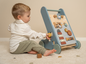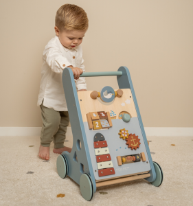 Dotaz na produkt Na splátky ještě dnesDřevěné multifunkční chodítko se stabilní konstrukcí je ideální pro trénování chůze dětí od 12 měsíců, které jsou téměř připraveny učinit první kroky. Užijte si společně radostné okamžiky, když vaše dítě poprvé přejde celou místnost! Chodítko zároveň nabízí řadu zajímavých aktivit pro zkoumání a pozorování. Pohyblivé a otáčivé části s s krásnými ilustracemi motivů ze života na moři dítě zabaví a zároveň podporují rozvoj jeho motorických dovedností.