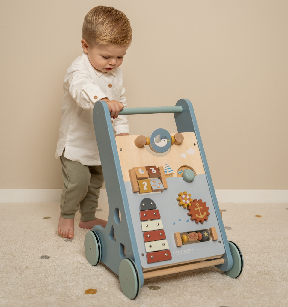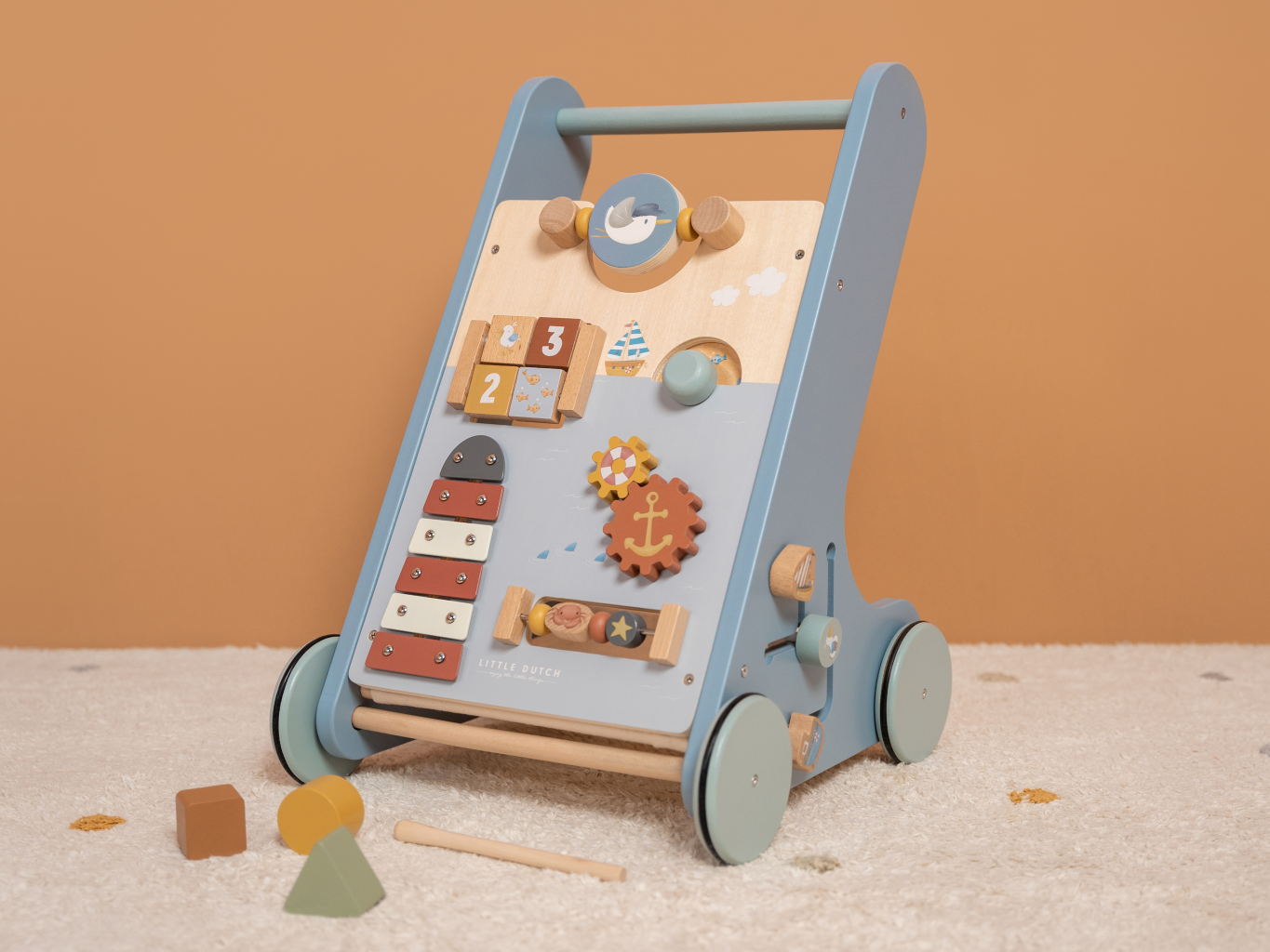 Chodítko je součástí designové kolekce Little Dutch Námořnický záliv, ve které najdete ložní prádlo, dekorativní doplňky do dětského pokoje, dřevěné a plyšové hračky i jídelní doplňky pro dětské stolování.