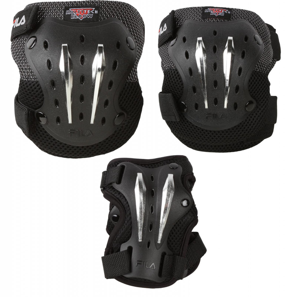 Sada in-line chráničů značky Fila. Kompletní sada chráničů pro jízdu na kolečkových bruslích. Sada chráničů obsahuje chrániče kolen, chrániče loktů a chrániče zápěstí. Každý chránič je z vnější části vybaven speciální dopadovou plochou z extrémně odolného materiálu. Vnitřní část chrániče je vystlaná měkkou a vzdušnou textilií zajišťující komfortní pocity během jízdy. Perfektní upevnění chrániče vždy zajišťuje sada dvou pružných upínacích pásků se suchými zipy.