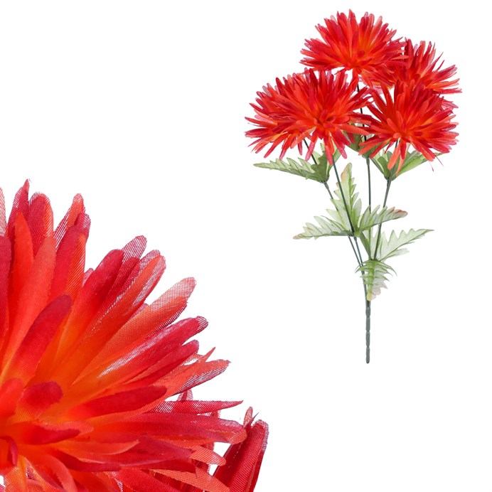 Dotaz na produktKytice z umělých chryzantém v krásné oranžové barvě je skvělou dekorací, která přináší nekonečnou krásu a potěšení. Je skvělou volbou pro ty, kteří chtějí mít krásné květiny bez starostí a péče. Nemusíte se trápit zaléváním a případně tím, že vám brzy uvadne, protože jako umělá vydrží po celou dobu v plné kráse. Bez ohledu na roční období, vám poskytne oslnivou výzdobu každého místa nebo vybrané události. Široký výběr květin podle druhů a barev umožňuje, aby si každý vybral tu, která nejlépe vyhovuje jeho preferencím a stylu. Všechny umělé rostliny jsou věrnou kopií svých živých protějšků, a udržují svou nádhernou podobu v plném květu po celý rok. Vytvořte si díky této dekoraci dokonalou atmosféru bez starostí a užívejte si nikdy nekončící květinovou výzdobu.