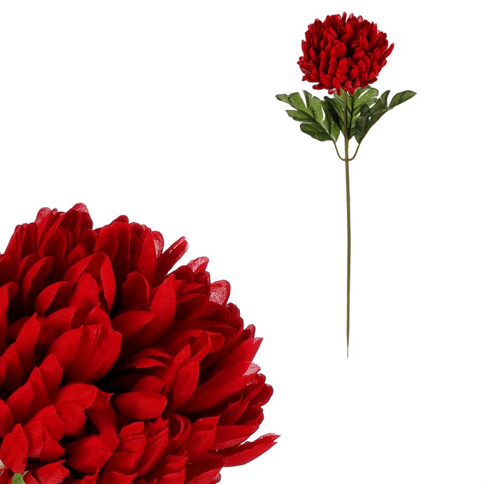 Dotaz na produktOživte atmosféru zejména podzimních dní a dušiček touto umělou chryzantémou ve formě řezané květiny s červeným květem. S jejím věrohodným vzhledem přináší do vašeho prostoru trvalou krásu, která nikdy neuvadne. Díky své univerzálnosti je tato umělá chryzantéma ideální nejen pro ozdobu interiéru, ale také pro výzdobu pietních míst pro období Dušiček. Nabízí se kombinace s dalšími barevnými variantami nebo přízdobami podle vašich preferencí, což vám umožní vytvořit jedinečné aranže.