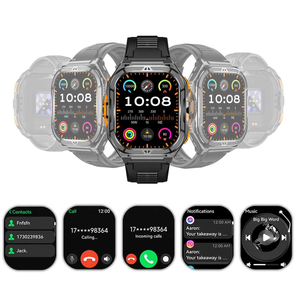 Dominantou hodinek je přehledný 1,96" AMOLED displej s rozlišením 410 x 502 px, který zaujme skvělou čitelností i na přímém slunci. Vestavěný reproduktor a mikrofon umožňují pohodlné telefonování přímo z hodinek, zatímco AI hlasový asistent pomůže s rychlým ovládáním nebo vyhledáváním informací.