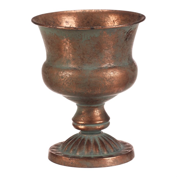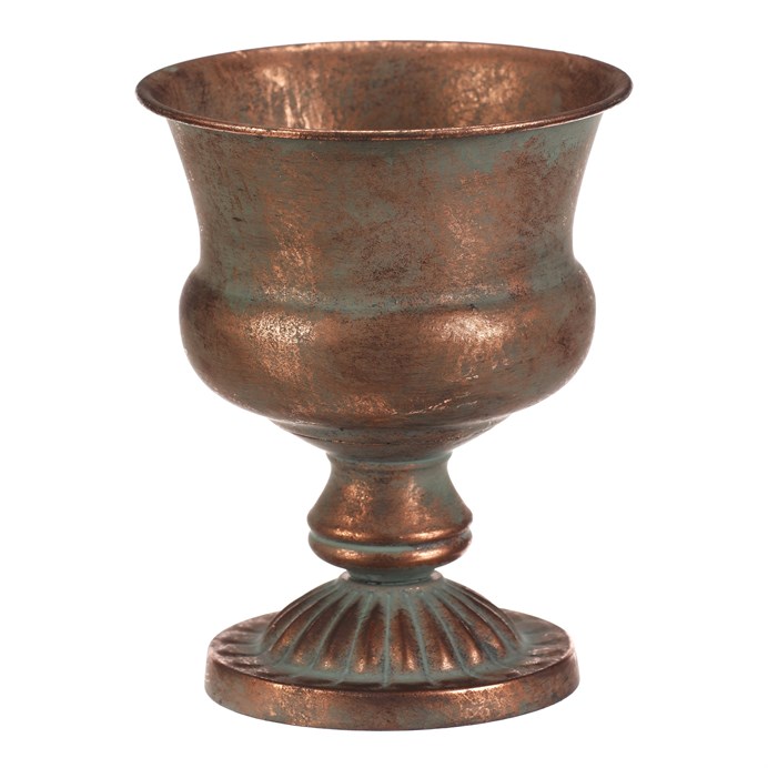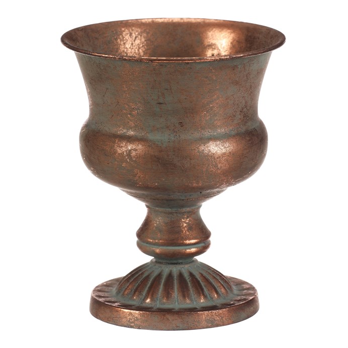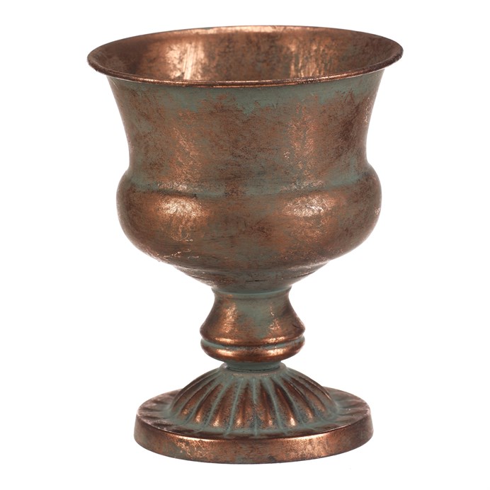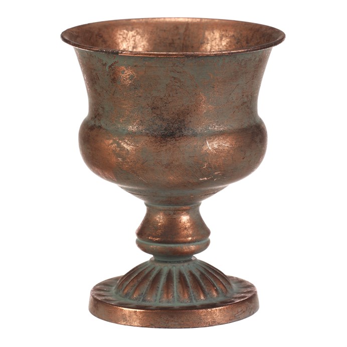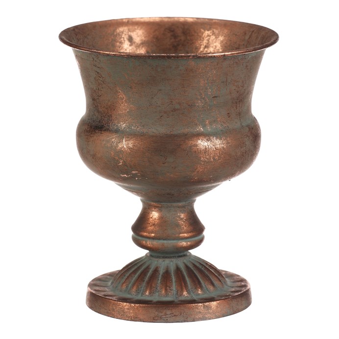 Dotaz na produktKovová číše v měděném odstínu představuje stylový aranžovací doplněk vhodný pro různé dekorace. Její tvar s rozšířeným horním okrajem a zdobenou základnou vytváří výrazný vizuální efekt, který podtrhuje industriální i vintage atmosféru interiéru. Díky pevné kovové konstrukci je stabilní a navržena pro dlouhou životnost. Číše o výšce 20 cm je ideální pro aranžování sušených květin, svíček nebo jiných dekorativních prvků.