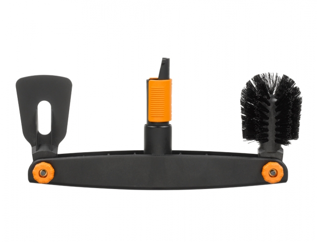 Dotaz na produktDůmyslná kombinace kartáče a škrabky v jednom nástroji umožňuje perfektní vyčištění okapů. Nastavitelný sklon kartáče zajišťuje jeho optimální polohu a bezpečnou práci ze země. Používá se s teleskopickými násadami. Šířka: 45 mm, délka: 310 mm, hmotnost: 330 g. Původní Fiskars číslo: 135542.