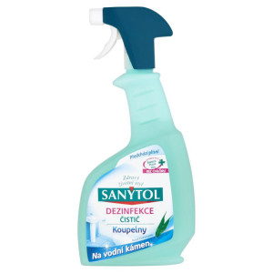 Sanytol vyvinul dezinfekční čistič koupelny, bez chlóru, který odstraňuje vodní kámen, rozpouští mýdlové usazeniny, zabraňuje tvorbě plísní a dezinfikuje v jediném kroku.