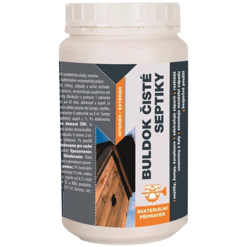 čistič septiků BULDOKje sypký, bakteriálně-enzymatický přípravek pro čisté septiky, žumpy, domovní ČOV, sifony, odpady a suché záchody bez zápachuodstraňuje nepříjemný zápacheliminuje tvorbu kalů a...