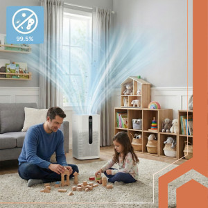 HEPA H12 filtr + aktivní uhlí = o 99,5 % čistší vzduch - třístupňová filtrace (předfiltr + HEPA + aktivní uhlí) zastavuje alergeny, prach PM2,5, bakterie a pachy, ideální pro alergiky, rodiny s dětmi a majitele domácích mazlíčků