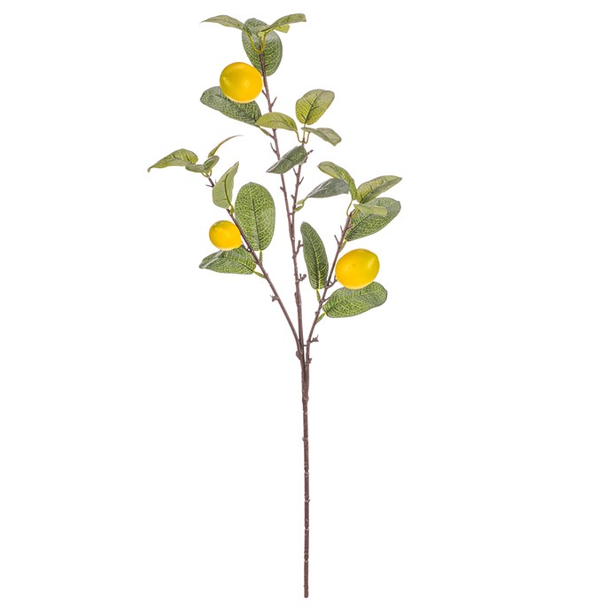 Dotaz na produktUmělá větev s žlutými plody citrónu přináší do interiéru svěží a barevný akcent. Plody i listy jsou vyrobeny z plastu, který věrně napodobuje přirozenou texturu a barevné odstíny. Větev je vhodná pro aranžmá v květináčích, dekorativních vazbách nebo jako samostatný doplněk. Díky použití plastu se snadno udržuje a dlouhodobě si zachovává svůj vzhled.