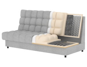 Výplň sedáku: Vlnitá pružina typu B, Polyuretanová pěna T2540, HR pěna 3030, povrchová úprava pěna T2130