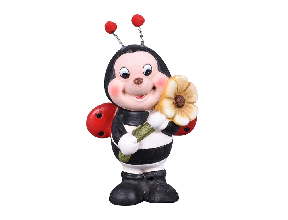 Dotaz na produktDekorace v podobě čmeláka s květinou. Vhodná do interiéru i exteriéru. Vhodná sezóna: jaro, léto. Materiál: terakota. Rozměry: šířka 11 cm, hloubka: 7 cm, výška: 17 cm. Barva: mix barev.