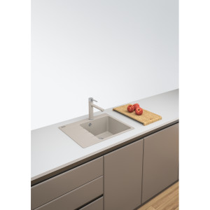 Dotaz na produkt Na splátky ještě dnesFragranitový dřez Centro. Cena zahrnuje: Vymezovací podložku pro montáž kuchyňské baterie. Sítkový ventil 3 1/2“ s přepadem. Sifon pro úsporu místa 6/4“ s odbočkou na myčku nádobí. 4 Místa pro vyvrtání otvoru. Možnost umístit dávkovač saponátu. Fixační příchytky Fast-Fix. Moderní linie, jemně zaoblené hrany, k okraji mizející drážky, tenký profil. Svěží a atraktivní design.