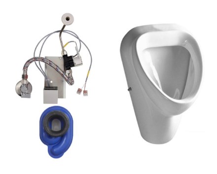 - keramický pisoár s radarovým splachovačem na montážní liště, elektromagnetický ventil, propojovací hadice, rohový ventil s filtrem a zpětnou klapkou, výtoková armatura s těsněním, sifon, montážní šablona, upevňovací sada, napájecí zdroj (RAD 6663 RZ), 4 ks AA alkalických baterií 1,5 V, 2700 mAh s pouzdrem (RAD 6663 BAT)