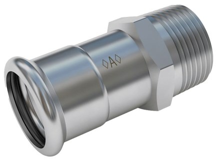 CONNEX A PRESS INOX 316L přechodová vsuvka, 54x1 1/2", s vnějším závitem, lisovací, voda, nerez ocel