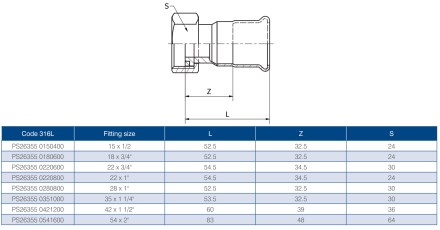 CONNEX A PRESS INOX 316L půlšroubení, 35x1 1/4", s vnitřním závitem, lisovací, voda, nerez ocel