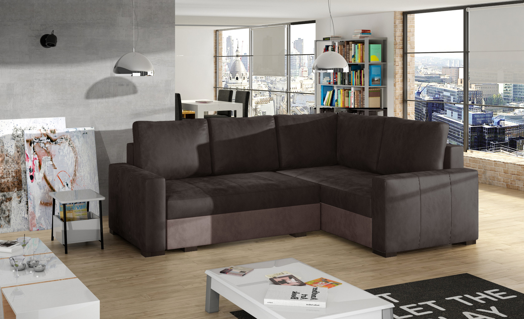 Dotaz na produkt Na splátky ještě dnesCorona je stylová, klasická a zároveň pohodlná a elegantní rohová pohovka o rozměrech 235 x 162 x 90 cm. Mezi její klíčové vlastnosti patří stabilní, osvědčený rám, tlumený design a pohodlné sedáky vyrobené z pružin Bonell a pěny T30, které jsou známé svou odolností vůči deformaci a opotřebení. Tento typ pěny také zajišťuje správnou oporu těla a vyrovnání držení těla. Corona je multifunkční kus nábytku – jeho výjimečná měkkost a spolehlivost zaručují vysokou úroveň pohodlí ve dne i v noci. Po rozložení pomocí výsuvné spodní části se pohovka promění v prostor na spaní o rozměrech 195 x 135 cm a obsahuje hluboký a prostorný ložní prádlo. Pokud hledáte praktický, ale zároveň klasický a elegantní kus nábytku, Corona je perfektní volbou, která splní všechny vaše potřeby. Látky: Monolith 29, Monolith 09