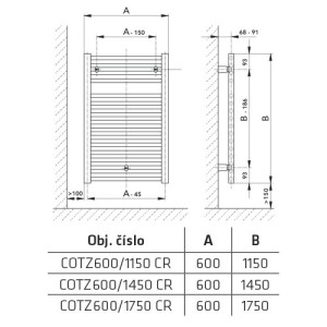 COSMO CLASSIC CHROM těleso otopné žebříkové 600 x 1150, 423W, rovné, chrom