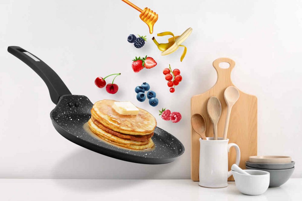 Pochutnáváte si doma rádi na palačinkách? A připravujete si je na palačinkové pánvi? Pokud ji doma ještě nemáte, je načase. Palačinky ale nejsou jediným pokrmem, který můžete na této pánvi připravit. Pánev je vhodná i pro přípravu placek, omelet nebo mini pizzy. Než začnete smažit, použijte minimální množství tuku. Díky tomu připravíte zdravější jídlo.