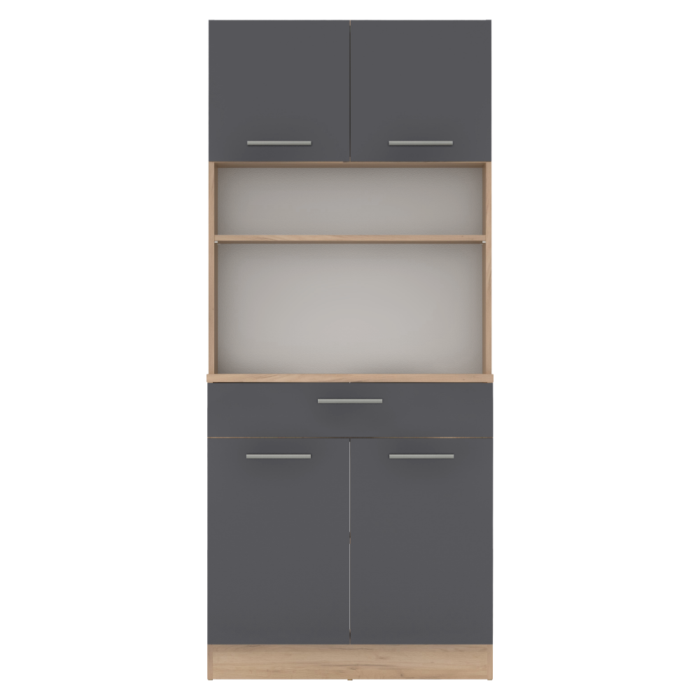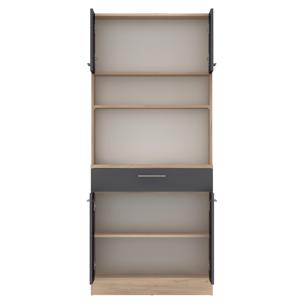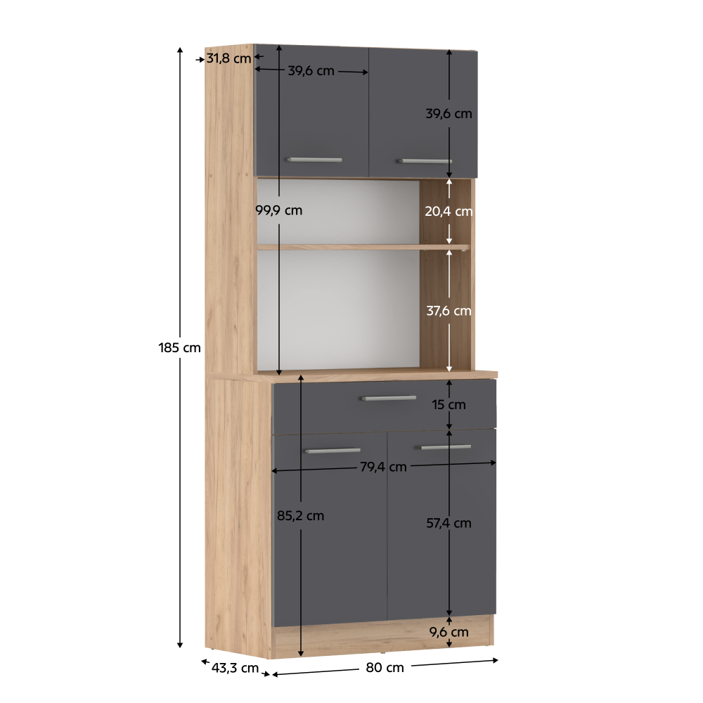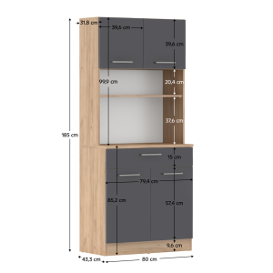 Materiál: laminovaná DTD • Barva: dub artisan/grafit • Rozměry (ŠxHxV): 80x43,3x185 cm • Tloušťka materiálu: 1,6 cm • Tloušťka vrchního plátu spodní skříňky: 2,2 cm • Čtyřdveřový • Policový • Nosnost police: 5...