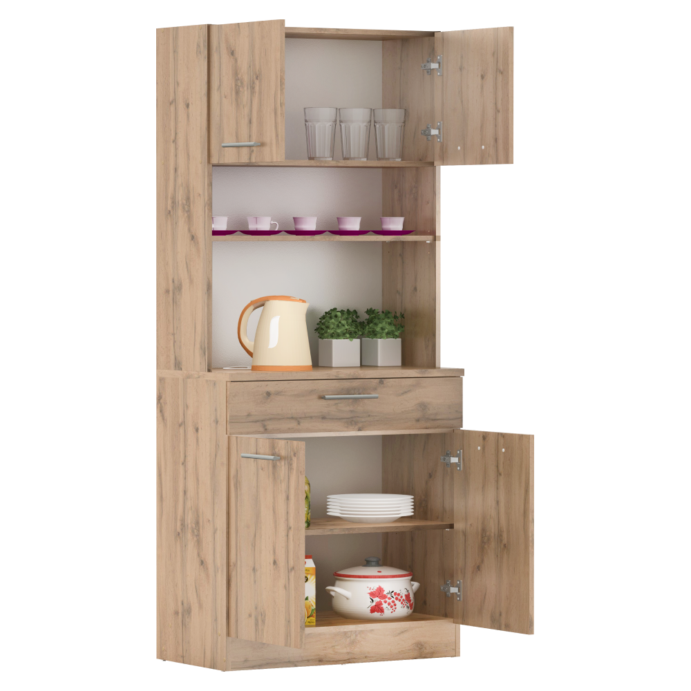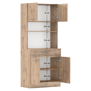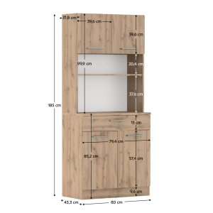 Materiál: laminovaná DTD • Barva: dub wotan • Rozměry (ŠxHxV): 80x43,3x185 cm • Tloušťka materiálu: 1,6 cm • Tloušťka vrchního plátu spodní skříňky: 2,2 cm • Čtyřdveřový • Policový • Nosnost police: 5 kg • 1...