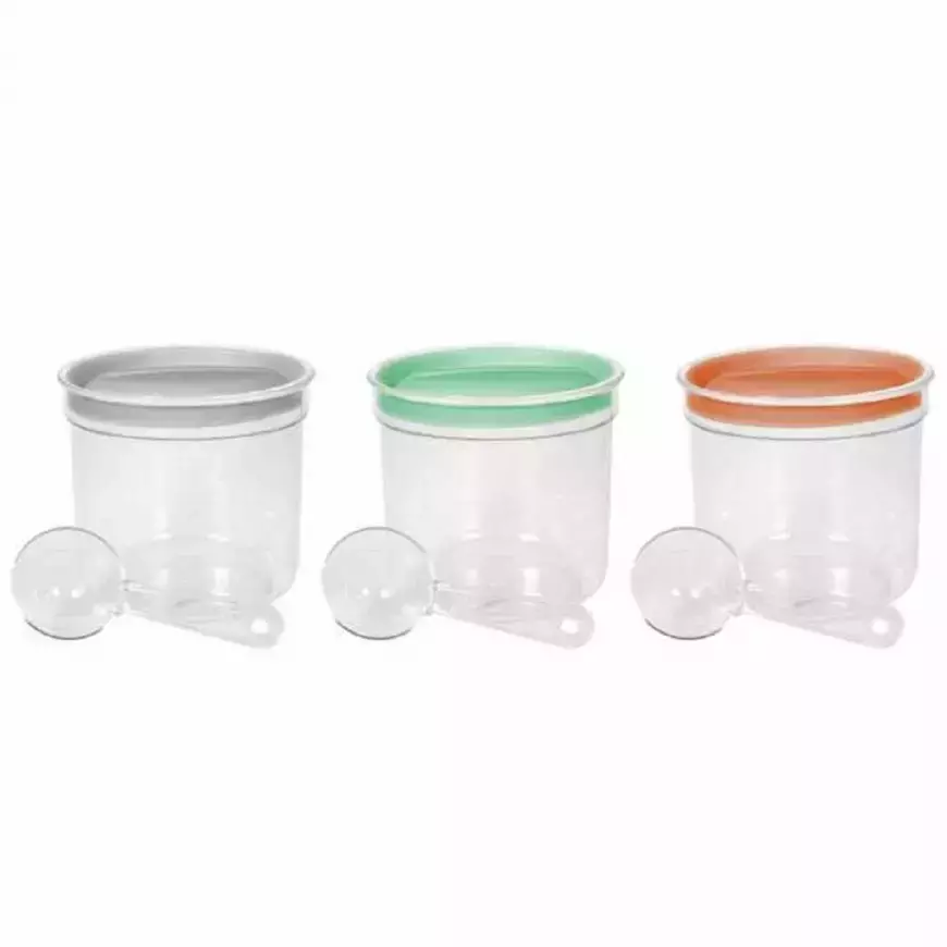Dotaz na produktPraktická dóza s víkem a odměrkou. Dóza na ovesné vločky, ořechy, sušenky, cukr, sůl, kávu, čaj atd. Vyrobena z vysoce kvalitního plastu o objemu 1L. Můžete si vybrat z barevného mixu - víčka barvy broskvové, mintové či světle šedé.
