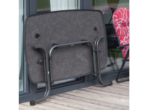 Velký skládací stůl s kovovou pevnou konstrukcí a odolnou vrchní deskou sevelit. Vhodný pro vnitřní i venkovní použití - zahrady, terasy, do restaurací či kaváren. Odolnost vůči UV záření, povětrnostním vlivům i mechanickému poškození. Lehce udržovatelný, omyvatelný, skladný.