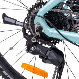 Na první pohled vás okouzlí elegantní rám, na první jízdu zase nadchne komfort gelového sedla, které spolehlivě pohltí každou nerovnost a promění jízdu v příjemný zážitek. A když přijde na trochu toho terénu? Vidlice SR Suntour XCM32 se zdvihem 120 mm se postará o to, aby vám kořeny ani kameny nezkazily náladu. Díky menším a ovladatelnějším kolům o průměru 27,5" se můžete pustit do stezek, lesů i města bez obav. A z praktického hlediska vás potěší i již nainstalovaný stojánek.