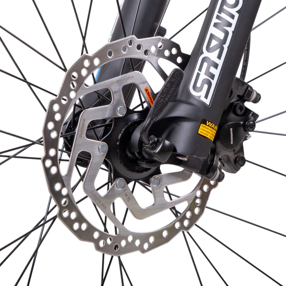 A když přijde čas zastavit? Hydraulické kotoučové brzdy Shimano MT200 vás nenechají ve štychu ani na mokru, ani na šotolině. Navíc vás potěší gelové sedlo Velo, které myslí na pohodlí i při delších trasách – protože si přece zasloužíte jezdit stylově a bez otlačeného pozadí.
