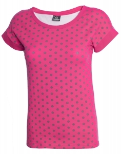 Dotaz na produktDámské tričko s krátkým rukávem a s šedými puntíky. Kulatý výstřih a konec rukávu je lemovaný jednobarevnou látkou. Složení: 95% Bavlna, 5% Elastodien