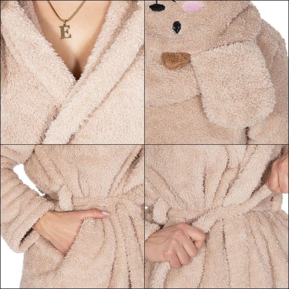 Dlouhý střih poskytuje dostatek tepla a ochrany, zatímco moderní design s motivem křečka s oušky dodává na atraktivitě. Župan je perfektně navržen tak, aby splňoval nároky na komfort a funkčnost v každodenním používání.