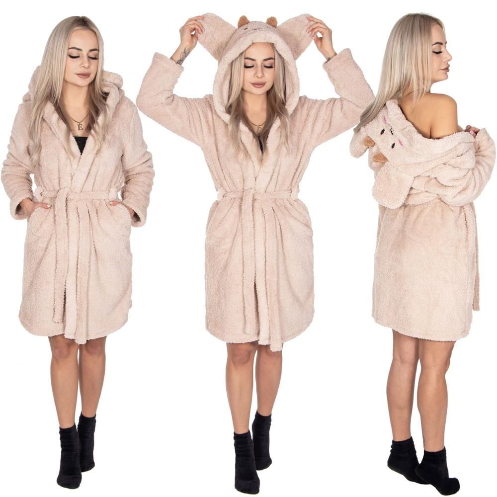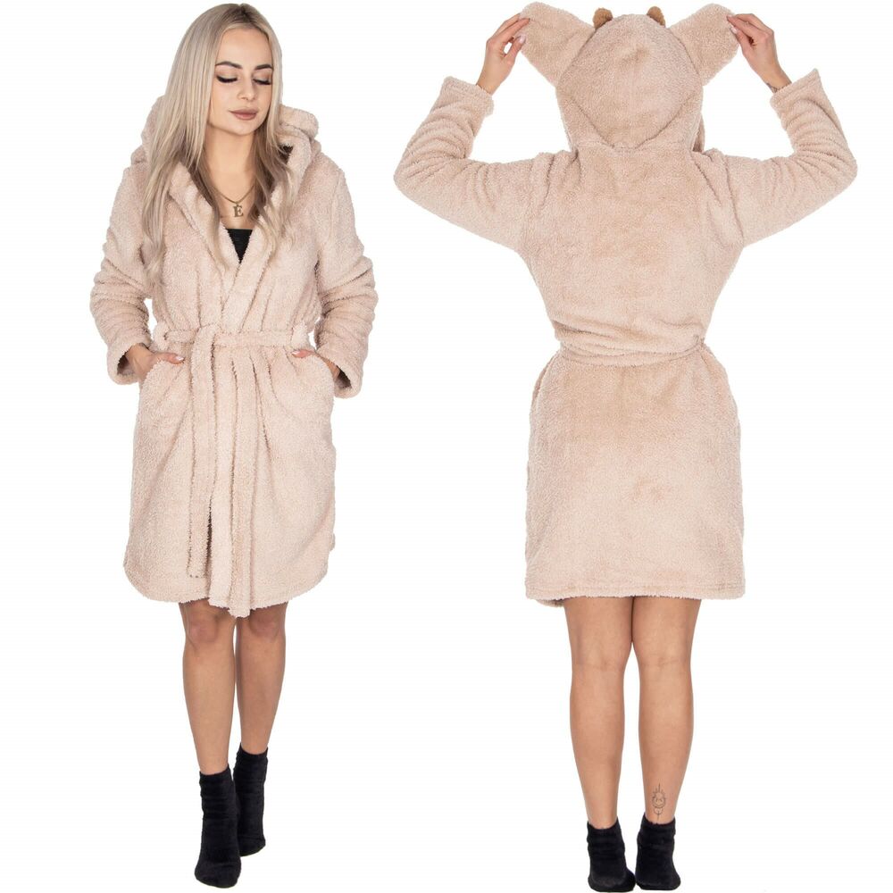 Roztomilý dámský župan s motivem křečka z příjemného a hřejivého materiálu, ideální pro chladnější dny. Dlouhý střih zajišťuje maximální pohodlí, doplněn dvěma praktickými kapsami, páskem na stažení, velkou kapucí s malými oušky a poutkem pro snadné zavěšení. Luxusní župan pro domácí relaxaci. Velikost L/XL.