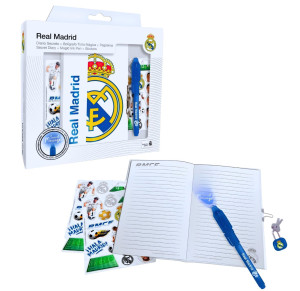 Dárková sada notesu, tajného pera a samolepek s motivem FC Barcelona. Obsahuje: notes A5, linkovaný, 60 stránek, 19 x 14,5 cm magické pero samolepky Rozměr balení: 25,5 x 22 x 4 cm. Pro děti od 3 let. Oficiální licence, Euroswan. Kids Euroswan. S.L. Victor Hugo 4 08174 Sant Cugat del Valles Tl. 0+4938825460