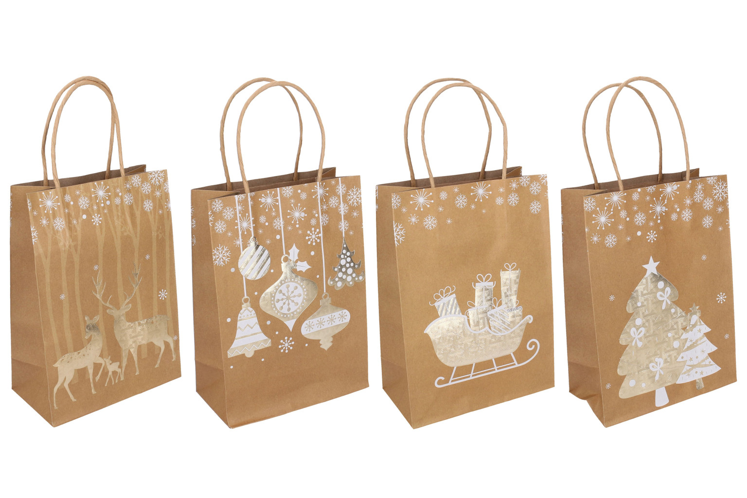 Dotaz na produktDárková taška o velikosti L 25x33x12 cm VÁNOCE. 4 varianty.