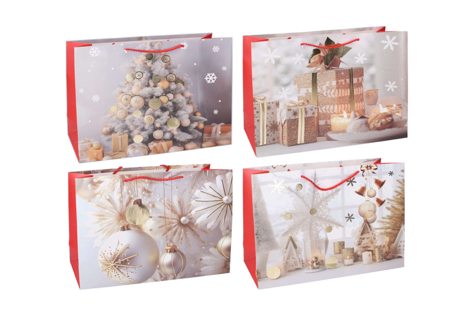 Dotaz na produktDárková taška o velikosti L 30x38,5x11 cm VÁNOCE. 4 varianty.