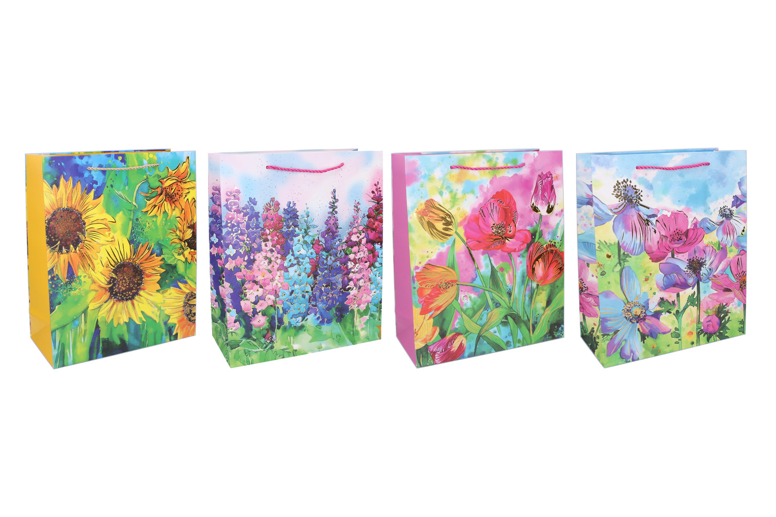 Dotaz na produktDárková taška o velikosti L 31x42x12 cm Celorok. 4 varianty květin.