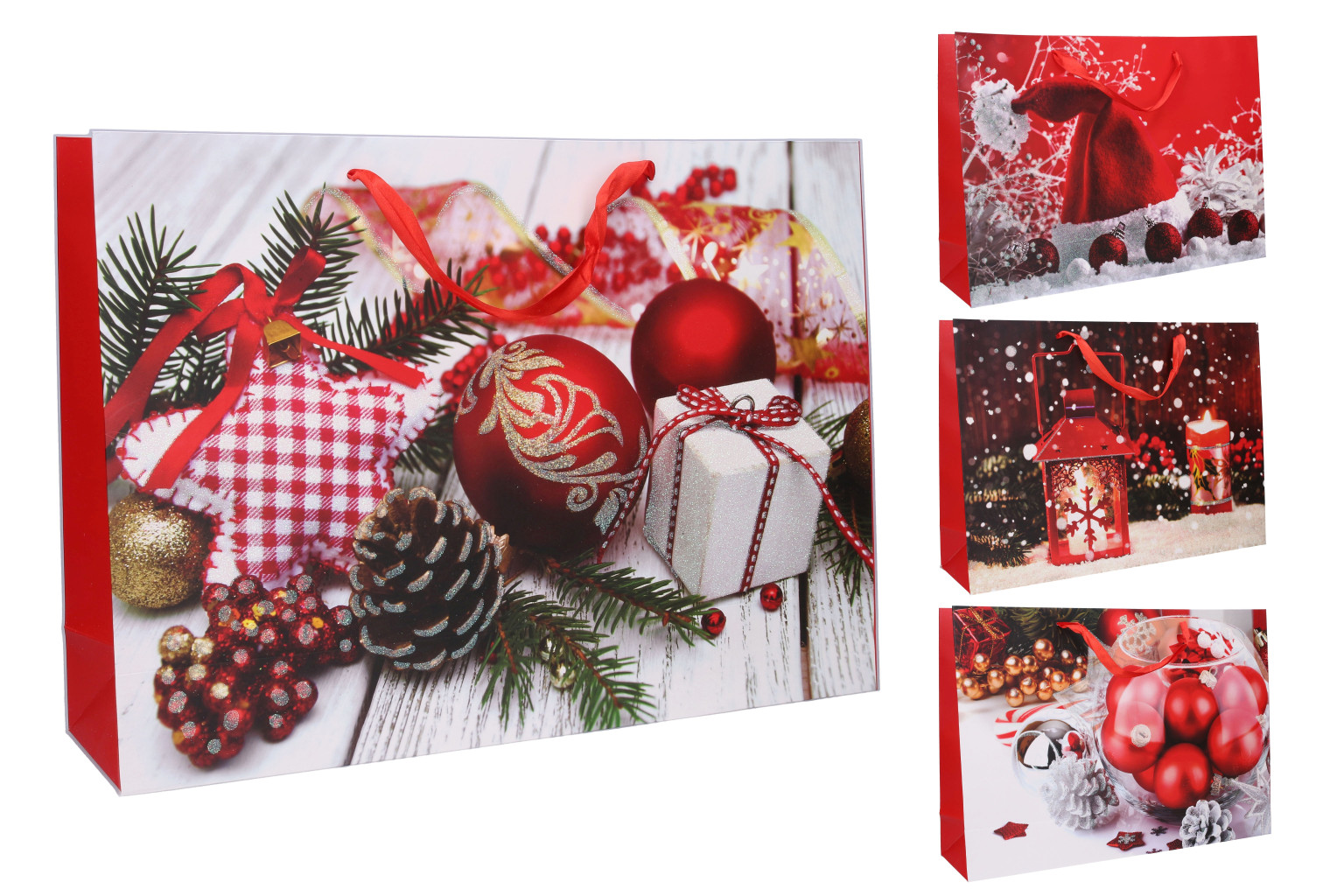 Dotaz na produktPotěšte rodinu a přátele hezkým dárkem na Vánoce ukrytým do papírové tašky. Vyberte si motiv, který se Vám líbí a může se balit. Velikost: L Rozměry: 31 (š) x 44 (v) x 12 (h) cm