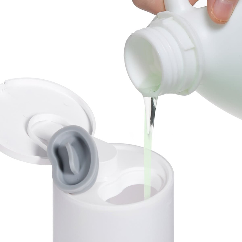 - určený pro různé tekutiny: tekuté mýdlo, tekuté dezinfekční prostředky, pleťovou čisticí vodu, pleťový čisticí olej, mycí prostředky na nádobí