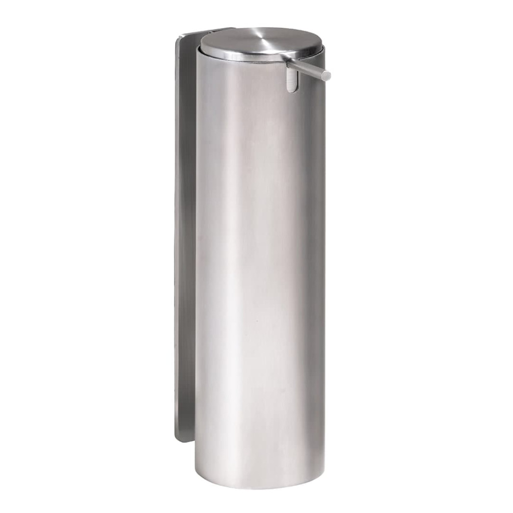 PARAMETRY:Hmotnost balení: 1,21  kgDruh výrobku: dávkovač mýdla Materiál: nerez Barva popisná: nerez Barva základní: nerez Design: kulatý Typ: nástěnné lesk/mat: mat Objem: 0,5 lŠířka: 6,6  cmVýška:...