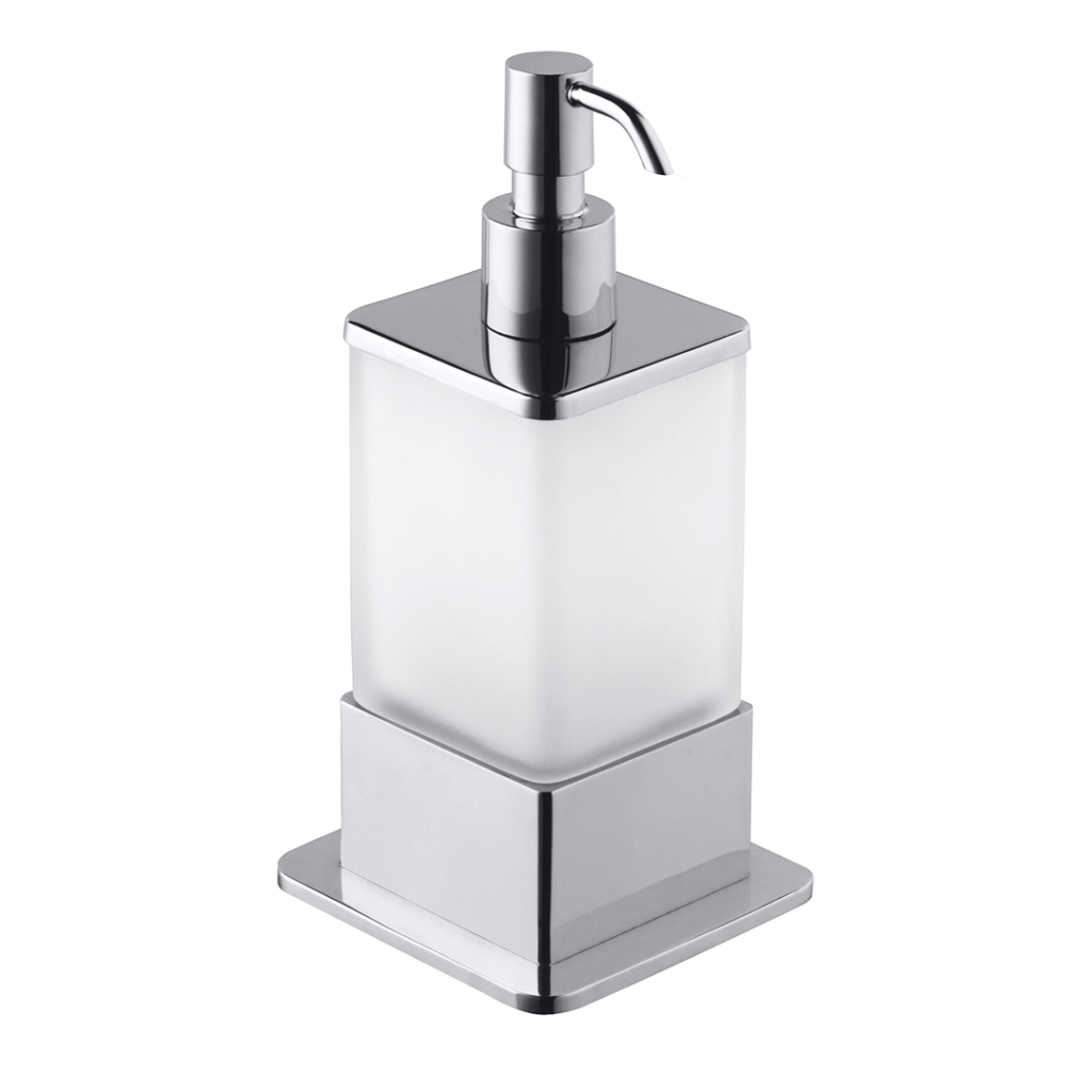 PARAMETRY:Balení: 1 ksHmotnost balení: 0,43  kgDruh výrobku: dávkovač mýdla Materiál: mosaz Barva popisná: chrom Barva základní: chrom Design: hranatý Typ: volně stojící lesk/mat: lesk Objem:...