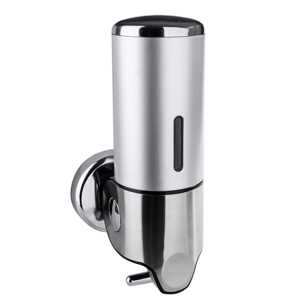 PARAMETRY:Balení: 1 ksHmotnost balení: 0,90  kgDruh výrobku: dávkovač mýdla Materiál: plast Barva popisná: stříbrná Barva základní: ostatní Design: kulatý Typ: nástěnné lesk/mat: mat Objem:...