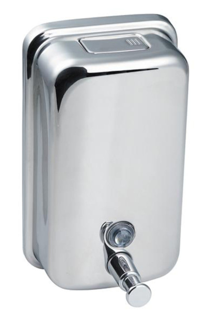 Dotaz na produktElegantní nástěnný dávkovač mýdla. Výška 180 mm, šířka 105 mm, jednodílný. Vyrobeno z kvalitní leštěné nerezové oceli. Praktický koupelnový doplněk.