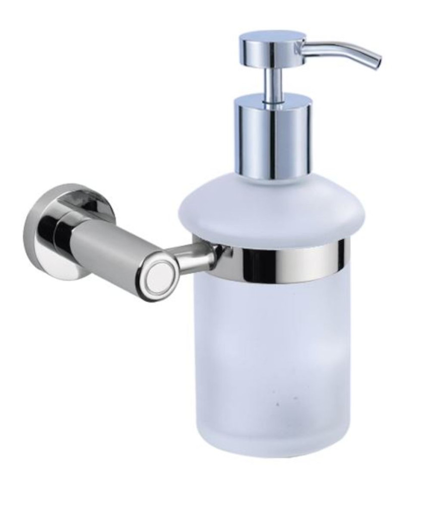 Dávkovač tekutého mýdla Soft je praktickým pomocníkem v každé koupelně. Je vyrobený z mosazi v kombinaci s mléčným sklem.