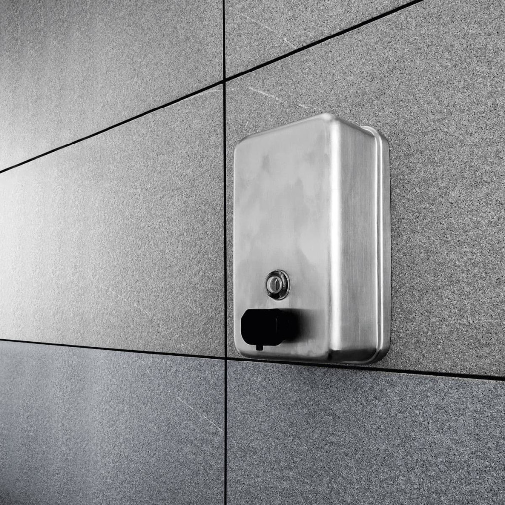 Dotaz na produkt Na splátky ještě dnesZásobník na dezinfekční gel nebo tekuté mýdlo vertikální. Broušená nerez 1.4301. Obsah 1100ml. Pumpička plastová černá. Uvnitř zásobníku se nachází plastová vložka poskytující ochranu nerezového těla dávkovače (viz obrázek). Plastová vnitřní nádoba výrobek chrání a prodlužuje tak jeho životnost. V případě plnění zásobníku dezinfekcí použijte GEL. Pro kapalnou dezinfekci není dávkovač vhodný.