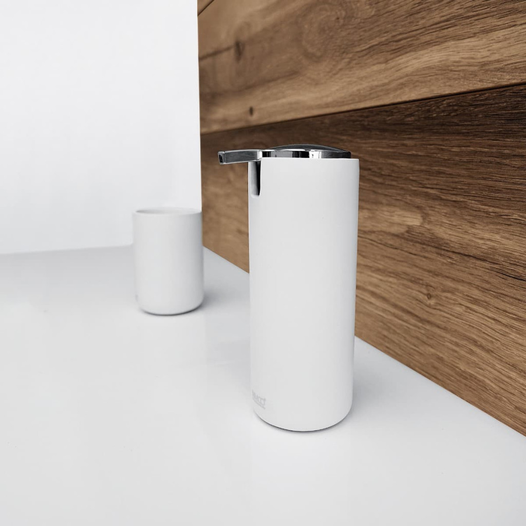 Povrch polyresinových a plastových POM materiálů vyžaduje pravidelné čištění. Volně stojící doplňky lze čistit mýdlovou vodou. Po vyčištění vytřete hadříkem do sucha. Nenechte doplněk stát na umyvadle ve vodě! Působením vody, zbytků mýdla, pasty apod. může dojít k poškození povrchu. Totéž platí i pro bambusové doplňky, které jsou součástí některých volně stojících doplňků. Na odstranění silnějšího znečištění použijte ocet. Roztok by měl působit cca 15 – 20 minut. Po aplikaci je nutné výrobek dobře opláchnout čistou vodou.