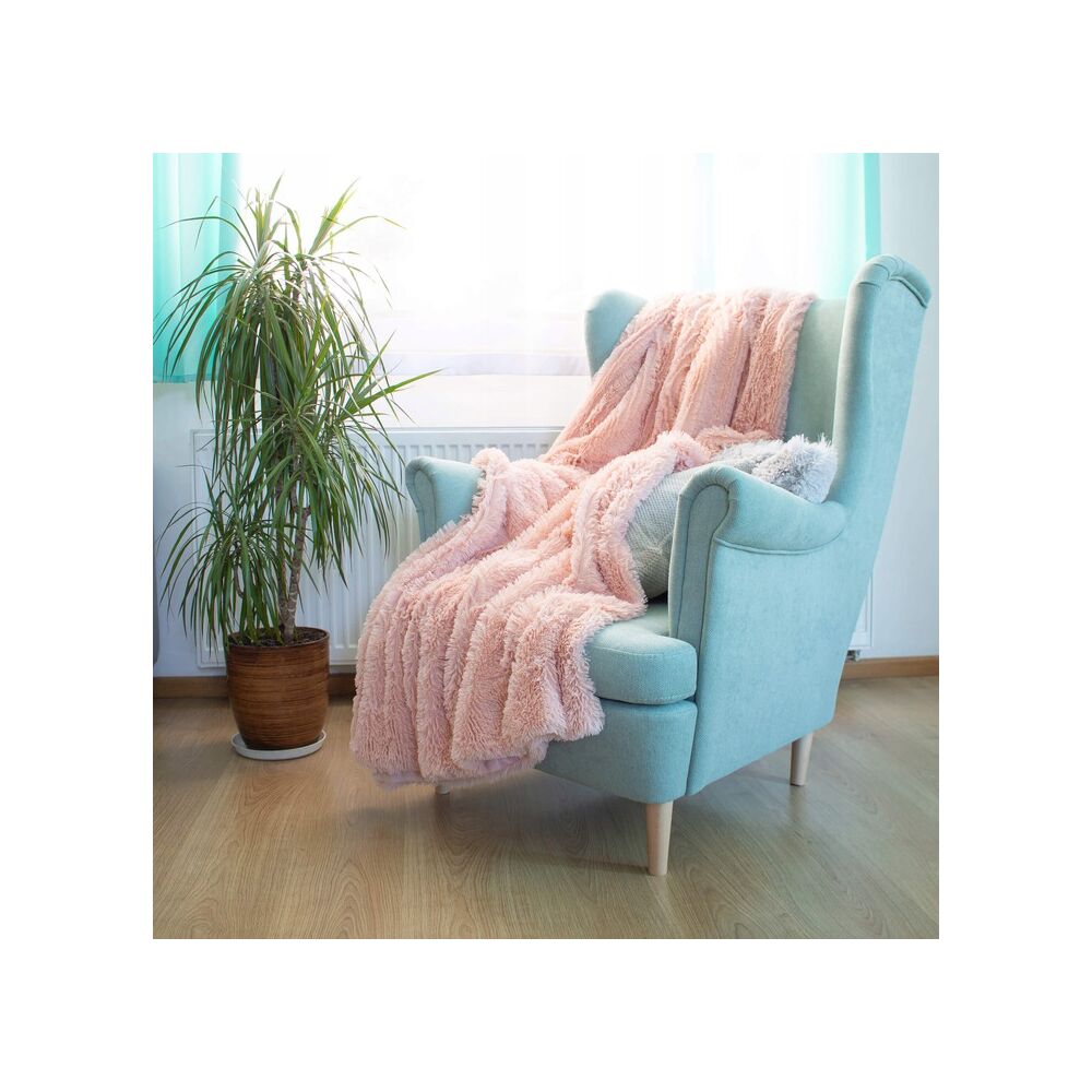 Přehoz se skládá ze 2 látek, které byly pečlivě sešity. To ovlivňuje zesílení přikrývky, a tím zvyšuje tepelný komfort při používání. Splývavý materiál znamená, že výrobek nevyžaduje žehlení a vždy vypadá hezky. Huňatá deka bude díky efektnímu balení skvělá jako dárek. Výrobek je pěkně esteticky složen a převázán stuhou v barvě samotné deky. Vypadá velmi zajímavě a jistě potěší každého příznivce teplých interiérů.