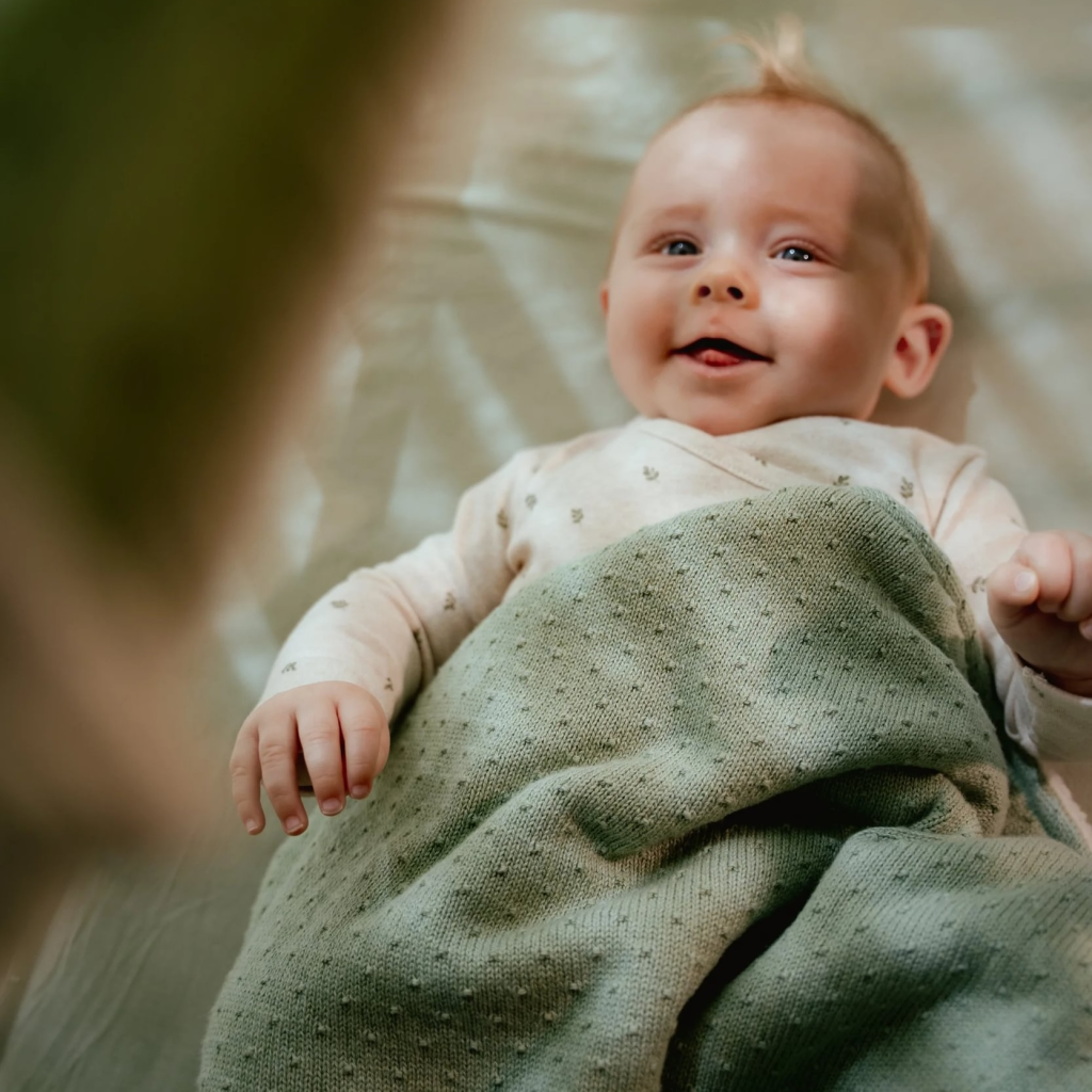 • Oboustranný design - měkká pletenina se vzorem z organické bavlny a teplý fleece poskytují dokonalé pohodlí a variabilitu použití