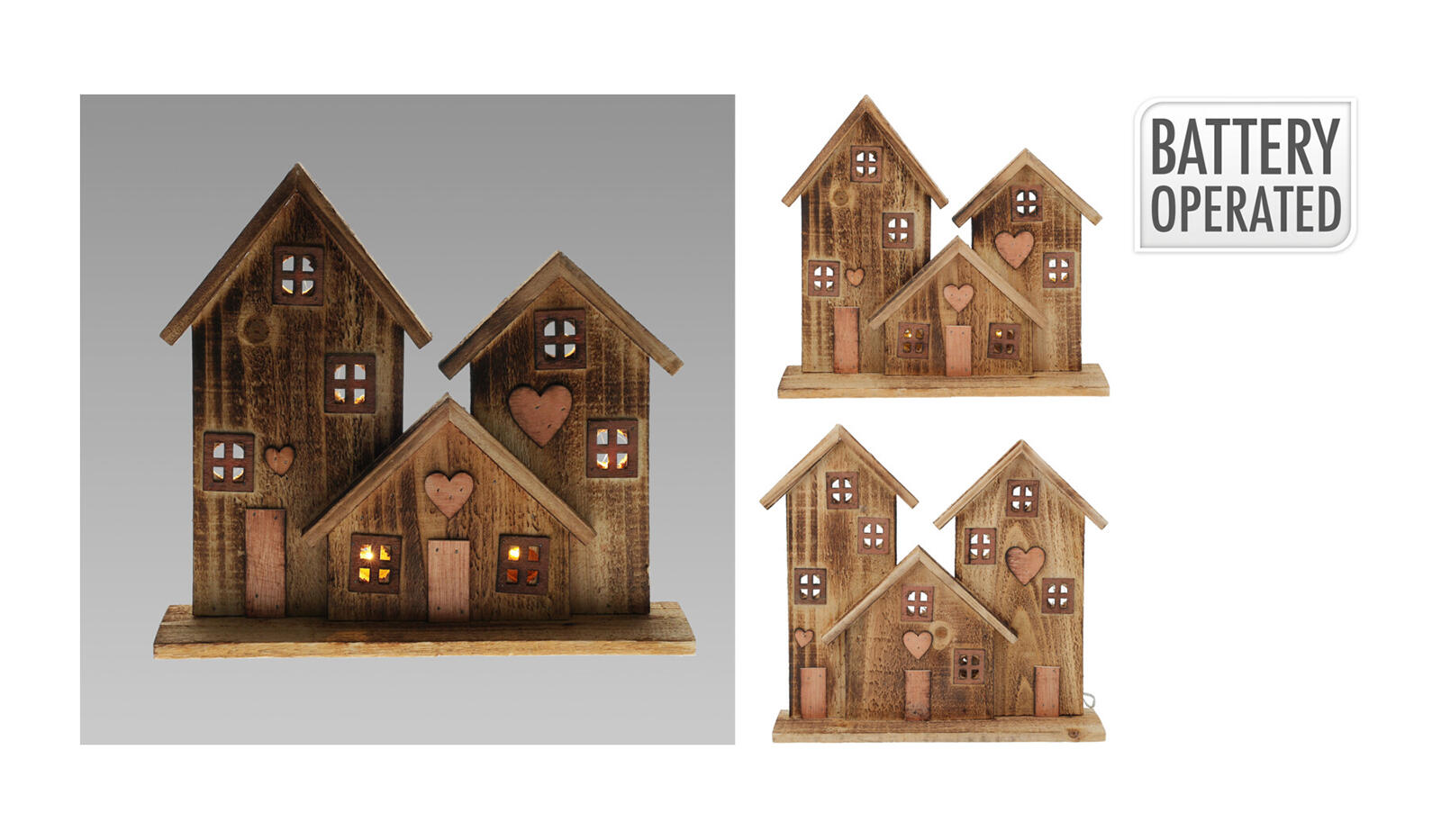 Dotaz na produktDekorace DOMKY 29 cm, LED, dřevěné HN.